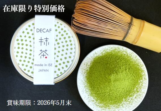 三重県産(伊勢茶)の高級碾茶を使用し、国内(三重県内)でカフェインを除去した、珍しく、貴重なデカフェ抹茶です。